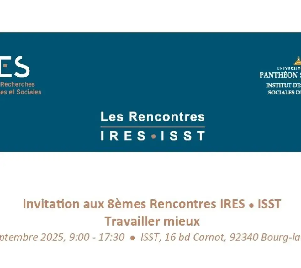 Rencontre Image de couverture Le vendredi 19 septembre 2025 09h00 17h30 8ème Rencontres ISST-IRES: Travailler mieux Ajouter à mon calendrier
